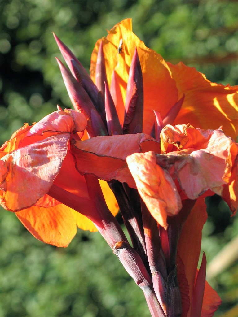 The flamboyant orange trumpet flowers of the Brugmansia have made one of their sporadic appearances but as natives of South America I can understand the confusion. They love a small sheltered courtyard behind our home living a frost free existence in partial shade in a raised bed.