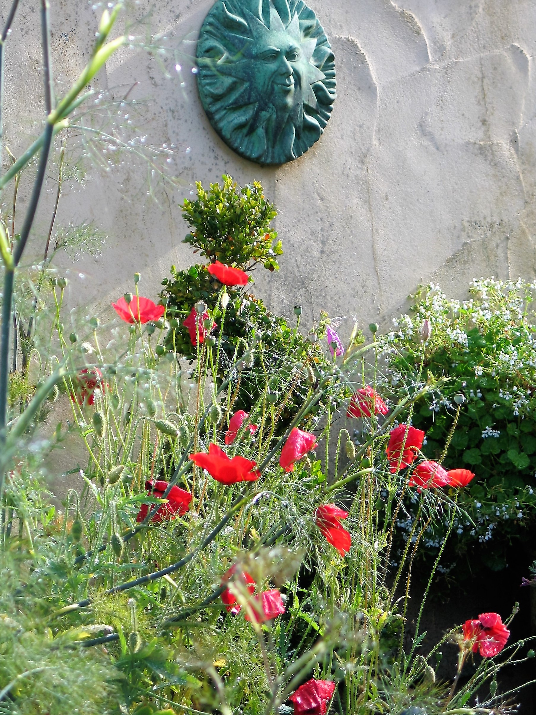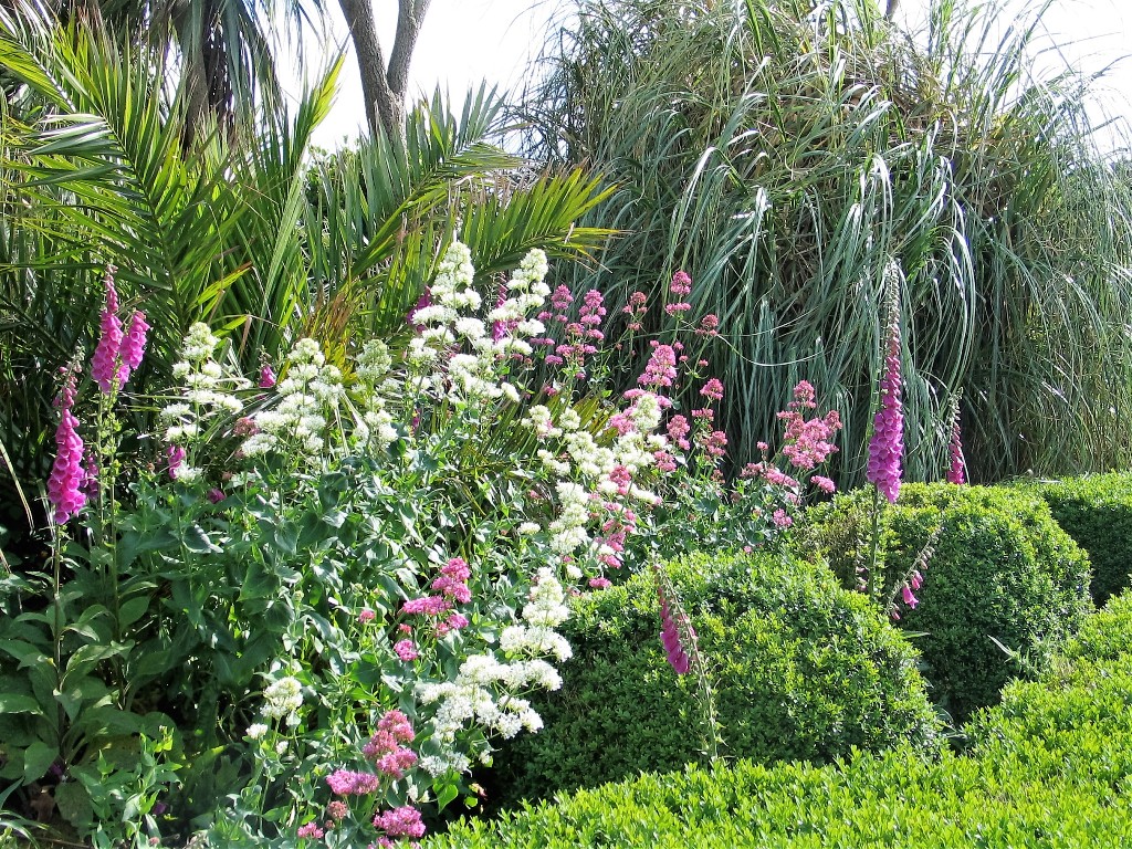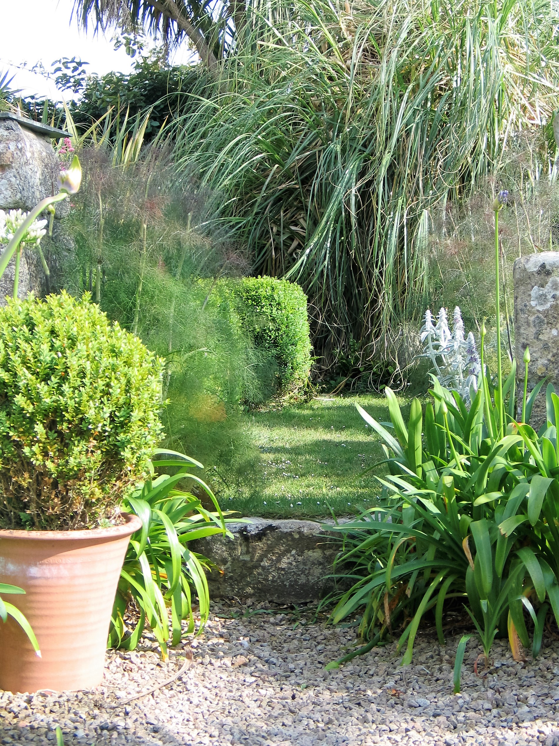 This month I’ve enjoyed watching the small intimate sundial garden behind the house that the Apricot bedroom terrace looks down through. I bought the sundial to celebrate our third wedding anniversary, oh so many years ago and gradually added the garden around it using the left over box plants from planting the main parterre in the courtyard. I filled one side of the box lined beds with fragrant lavender and the other tucked more in the shade of the bank is filled with ebullient wild flowers simple foxgloves Valerian that thrive in the Cornish countryside.