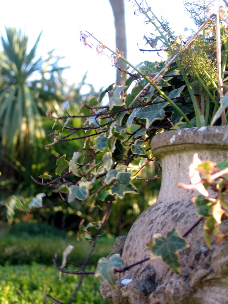 As always at this time of year it is the very structure of the garden that holds the attention the geometric hedges, the topiary box, the repeat planting of the evergreen palms – they all help to hold the garden together in the leaner gardening months.