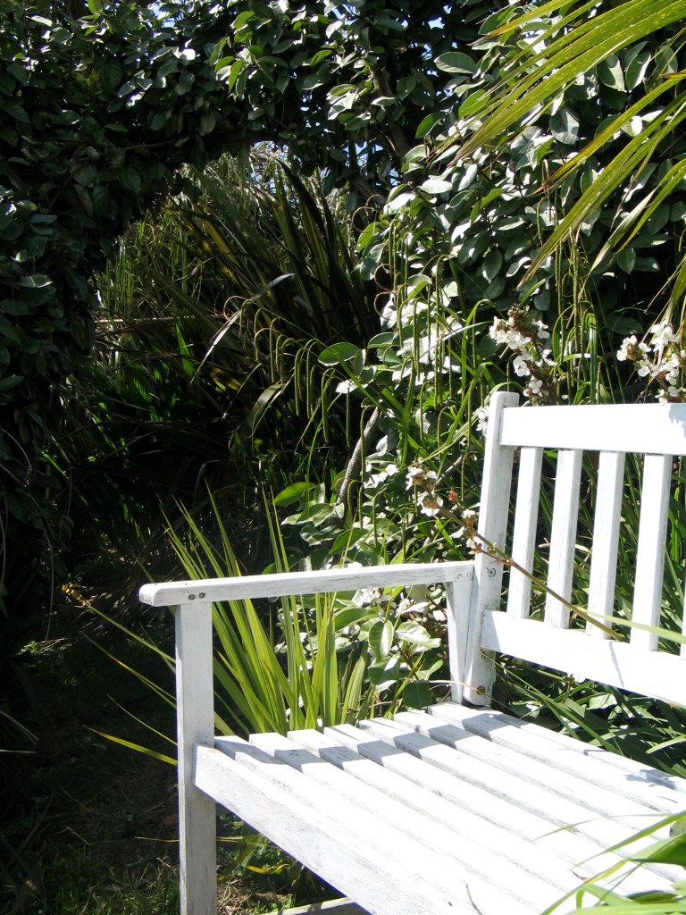 A newly formed arch in the shelter belt where a bench looks out to sea