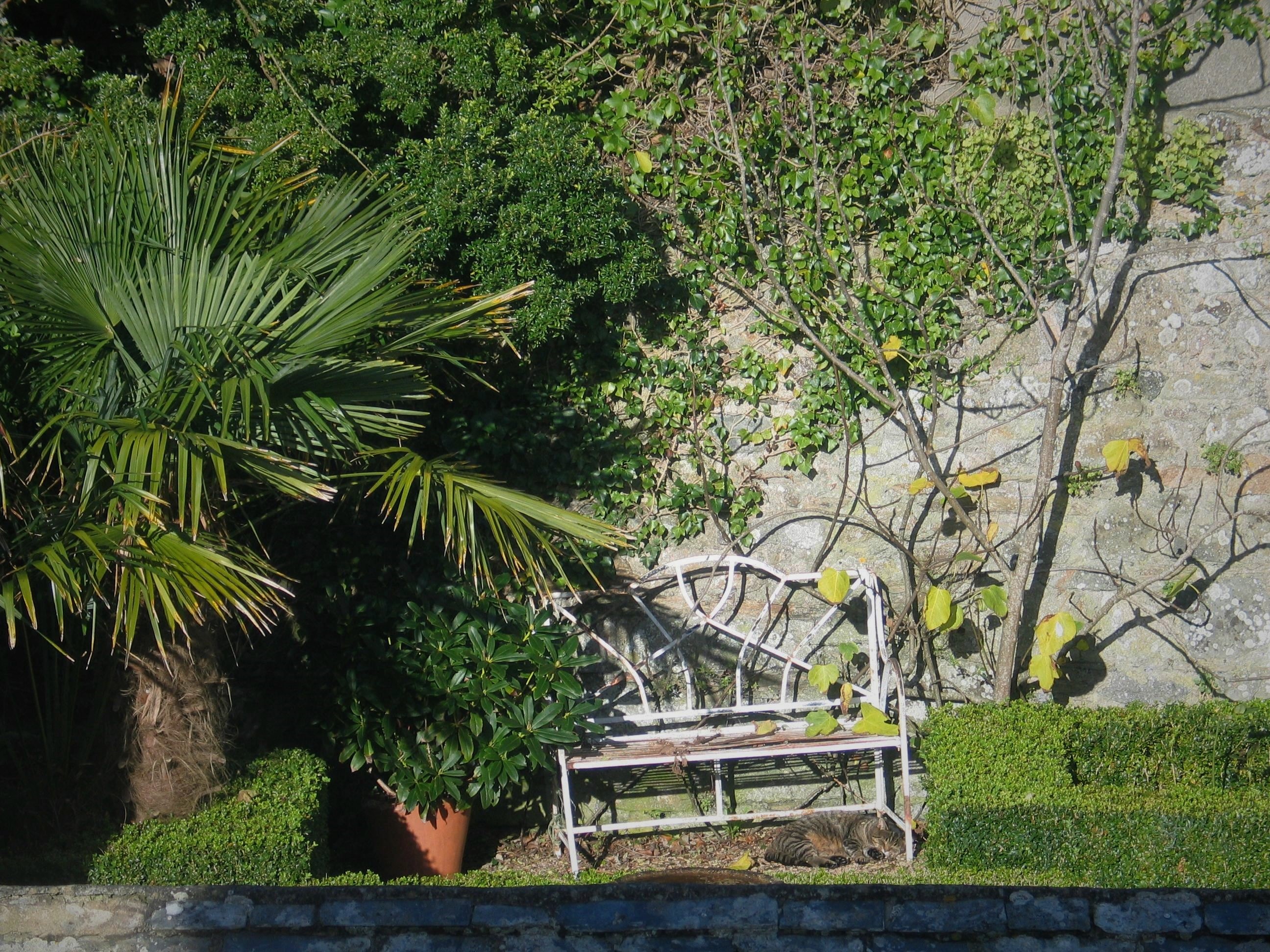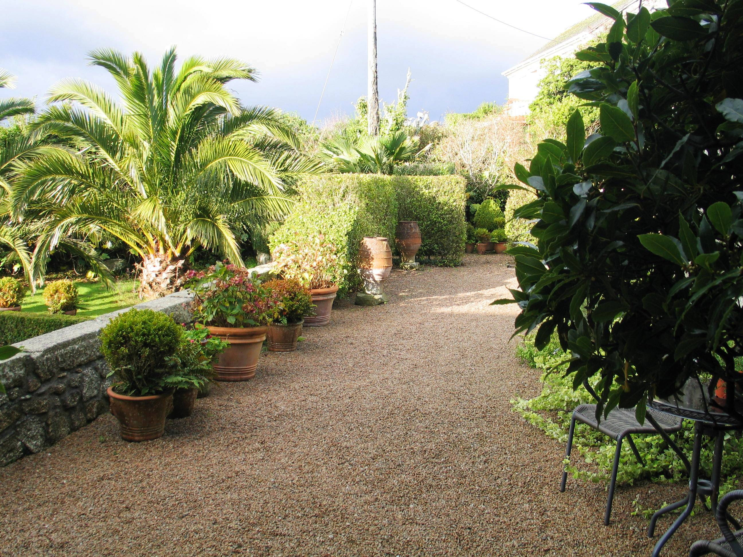 I must admit that we spend less time on the garden at this time of year but still spend afternoons loading those handy spent ton builders merchant bags with the fallen palm leaves and debris brought down by the wind, before standing back briefly to admire our efforts………….. Before the next wind scorches across the bay from the sea towards us, ah well!