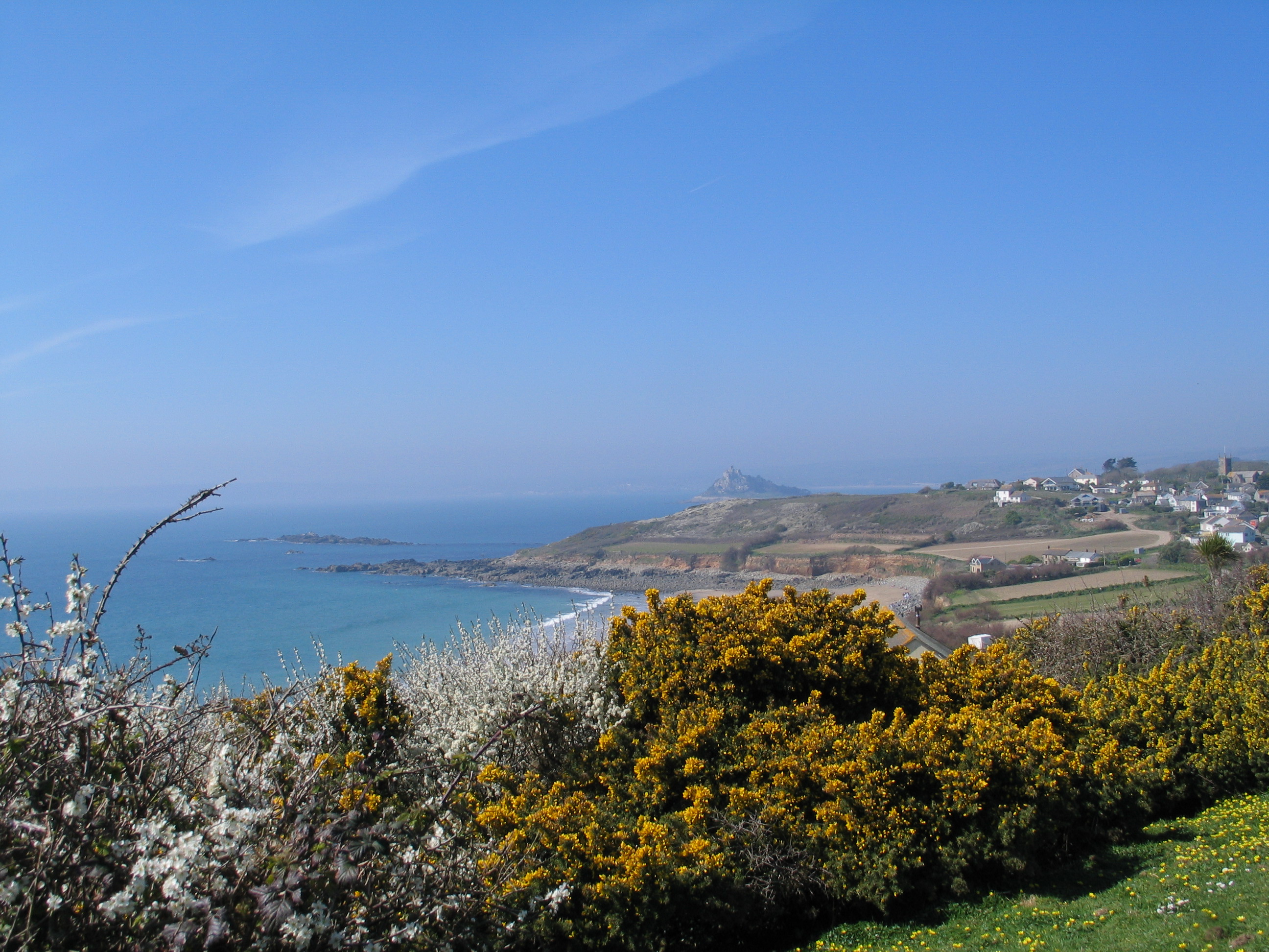 I stopped to take a photo looking back over Perranuthnoe own beach with the spring tide exposing a vast stretch of sand and the haunting beauty of St Michael’s Mount just beyond before watching a seagull twist in the wind and drop below the granite cliff.